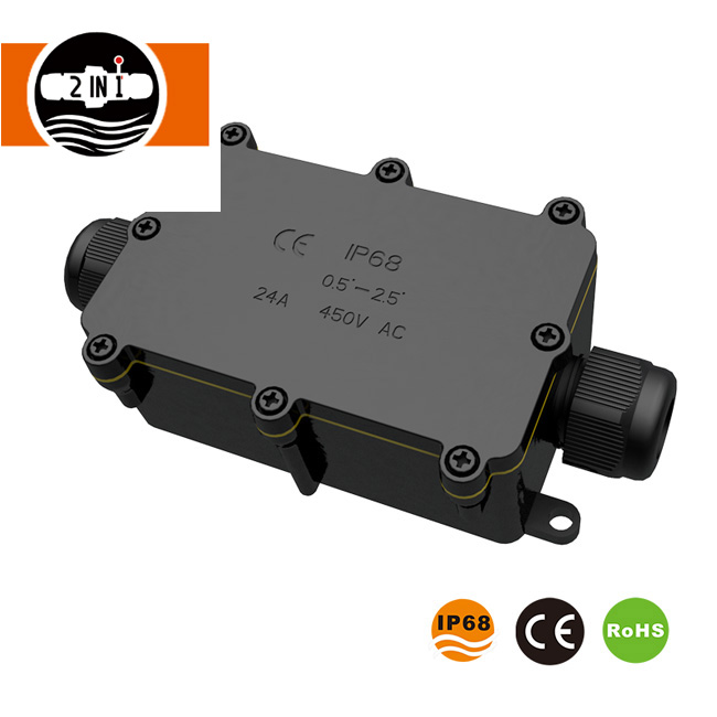 Terdapat satu siri kotak simpang kalis air, termasuk 2 hala, 3 hala, 4 hala, 5 hala dan 6 hala. Kotak Persimpangan Elektrik Kalis Air 2 Hala mempunyai berbilang bahagian untuk memastikan tahap kalis airnya, termasuk cincin-o, pengedap kalis air dan pengedap hujung fleksibel yang direka untuk mengetatkan dan mengelak kabel selepas pematerian dengan sesentuh dengan kabel.