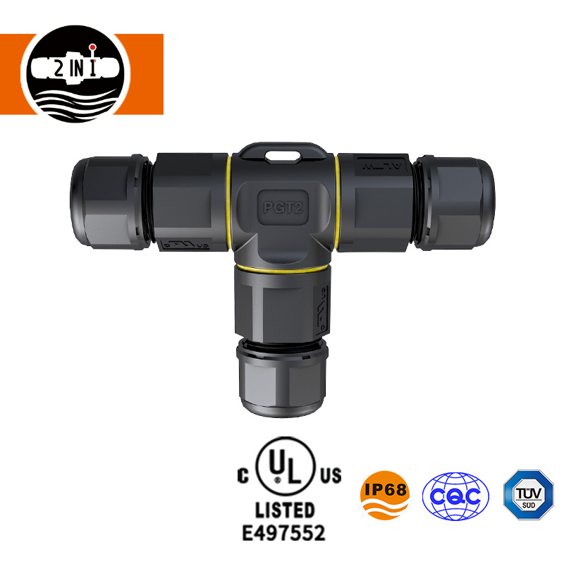 Kalis Air Penyambung Wayar 3 Hala ini telah lulus sijil UL, TUV, RoHS. Ia dengan tahap kalis air IP68, dan badan utama diperbuat daripada bahan nilon untuk meningkatkan ketahanan dan keselamatan penyambung kalis air.