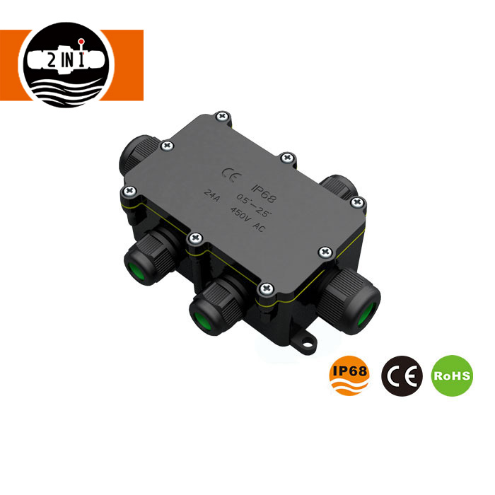 Terdapat satu siri kotak simpang kalis air, termasuk 2 hala, 3 hala, 4 hala, 5 hala dan 6 hala. Kotak Persimpangan Elektrik Kalis Air 5 Hala mempunyai berbilang bahagian untuk memastikan tahap kalis airnya, termasuk cincin-o, pengedap kalis air dan pengedap hujung fleksibel yang direka untuk mengetatkan dan mengelak kabel selepas memateri dengan sesentuh dengan kabel.