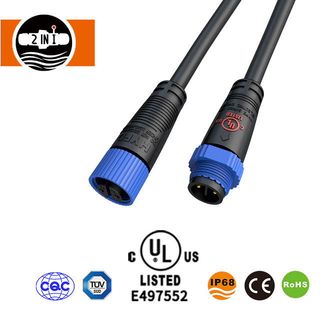 Penyambung Wanita Lelaki Kalis Air UL M15, 2 tiang, 3 tiang Penyambung kalis air tersenarai UL yang dibentuk dengan kabel, yang digunakan secara meluas untuk pencahayaan LED luar. Jenis kabel dan panjang kabel boleh disesuaikan.